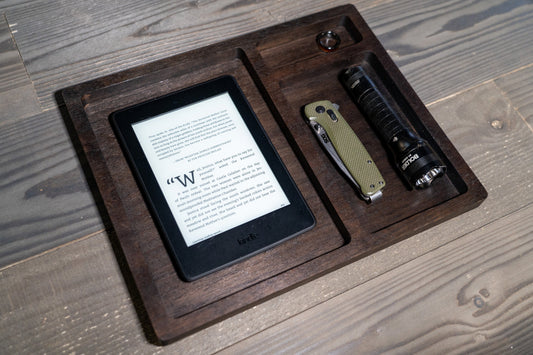 EDC Nightstand Dump Tray - 3 Compartment Wood Valet Tray