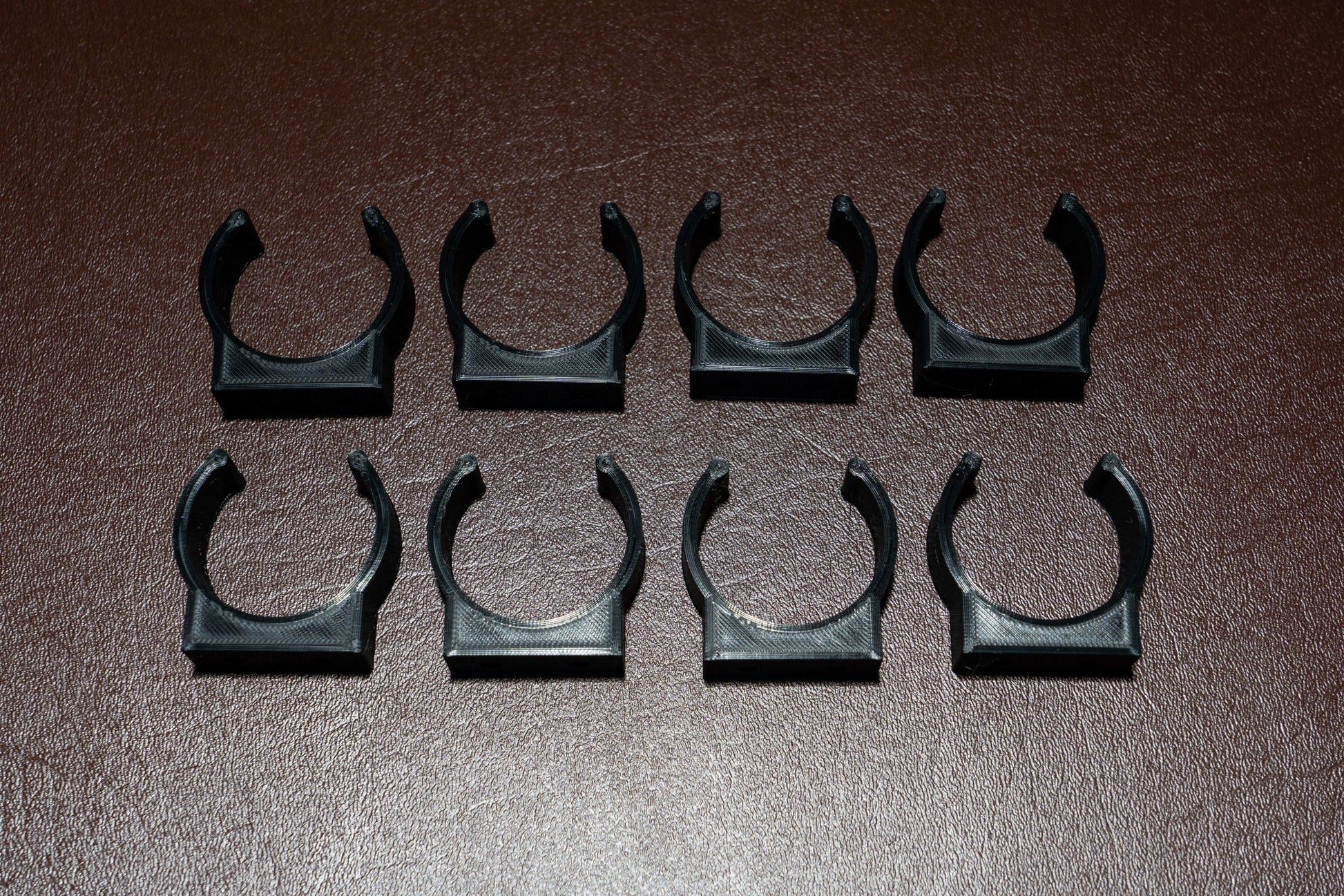Whether you are organizing you shop, or routing dust collection hose, these mountable clips will be a game changer. This set includes 8 plastic clips that each feature 2 screw holes to allow you to securely attach the mounts to you wall, workbench, CNC enclosure, or wherever you need hose organization.
