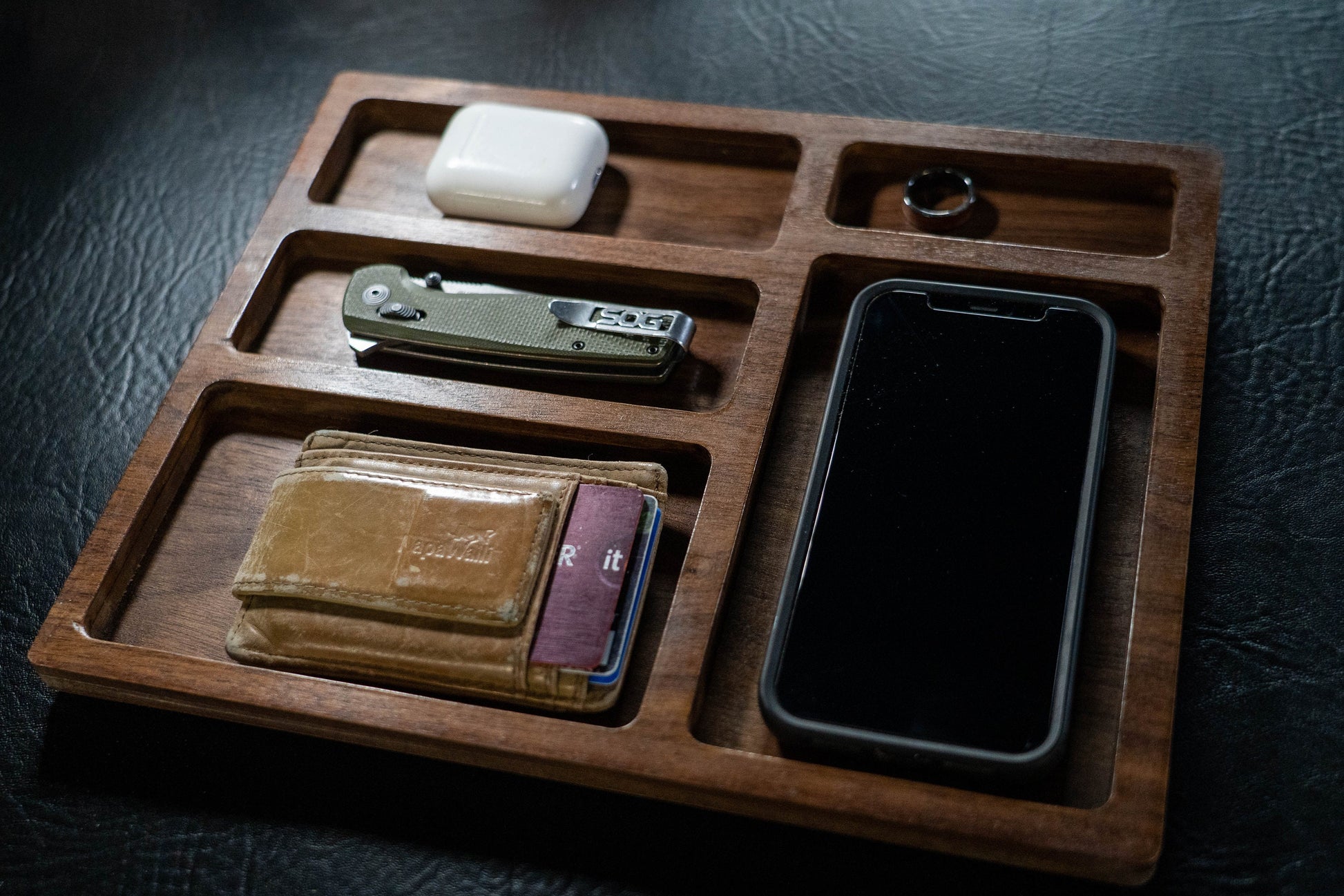 Walnut EDC Nightstand Dump Tray - Wood Valet Tray
