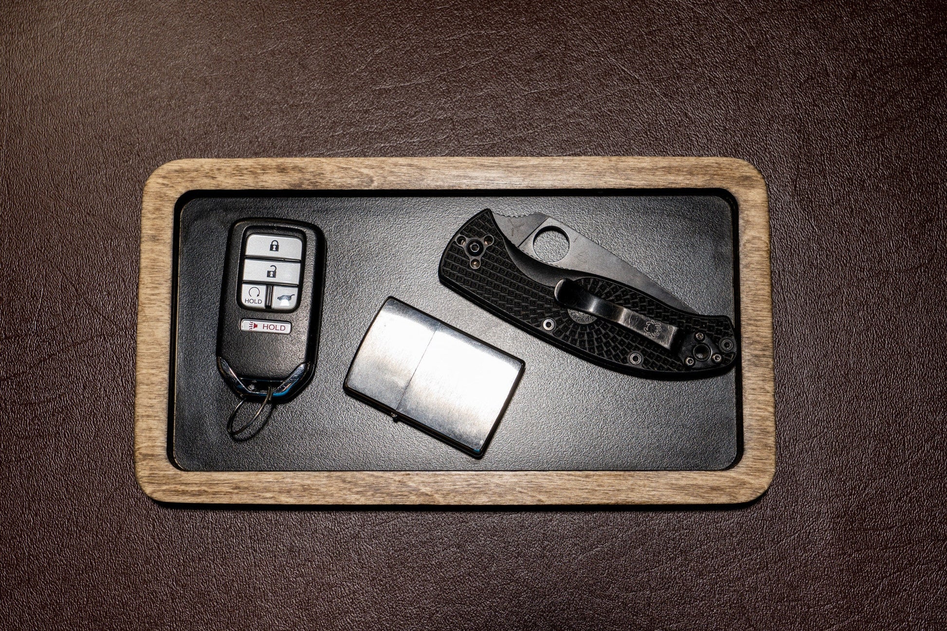 Wood Catch All Tray with hard black lining - EDC and Knife Tray